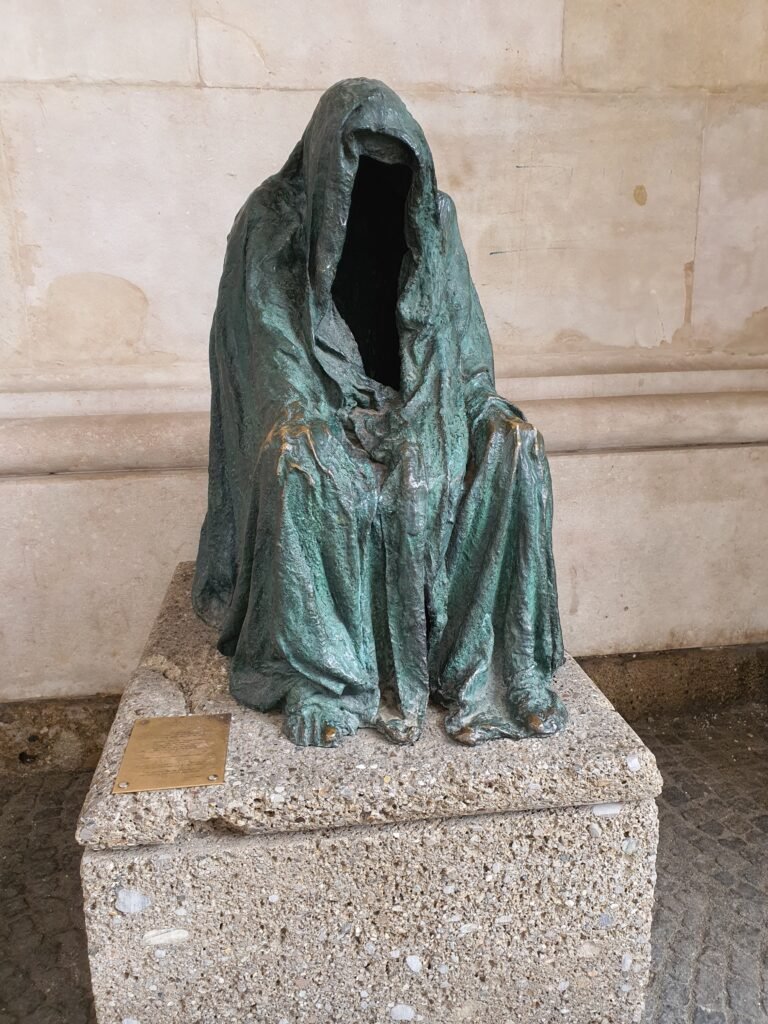 While walking through the city, we stumbled upon a unique and slightly eerie sculpture known as the Pietà or the Cloak of Conscience. It consists of a hollow, bronze cloak that represents a ghostly, faceless figure. It was one of the most interesting pieces of public art we encountered in Austria.